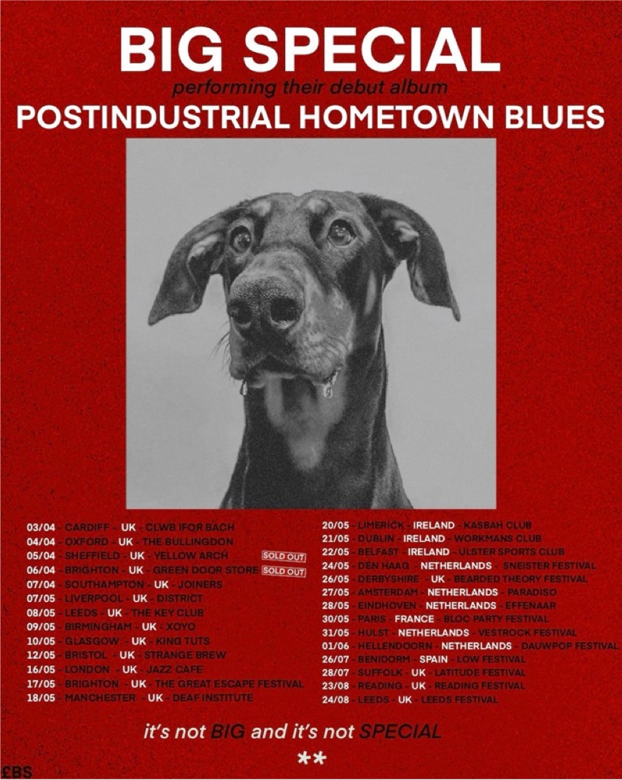 Para a BIG SPECIAL – Joe Hicklin (vocal) e Callum Moloney (bateria) – seu som vem de vozes vitais e frustradas de jovens da classe trabalhadora que nem sempre são ouvidas na dimensão que deveriam. É uma frustração que vem à tona por meio de uma voz que, às vezes, é grosseira e crua, mas sensível, desesperada e comovente em outras. A voz inflamada de Hicklin avança desde os rosnados guturais do punk e palavra falada serrilhada até o soul elevado e vice-versa, chegando com o sangue de seus antepassados, esmagado sob o peso da história e reformulada para uma nova geração. É forjada, crua e furiosa com um mundo sem opções, com o enfraquecimento do entendimento comum entre as classes sociais da Inglaterra, com a exasperação diante da repetição de ciclos e com a sensação de que você está assistindo à sua própria vida de fora.