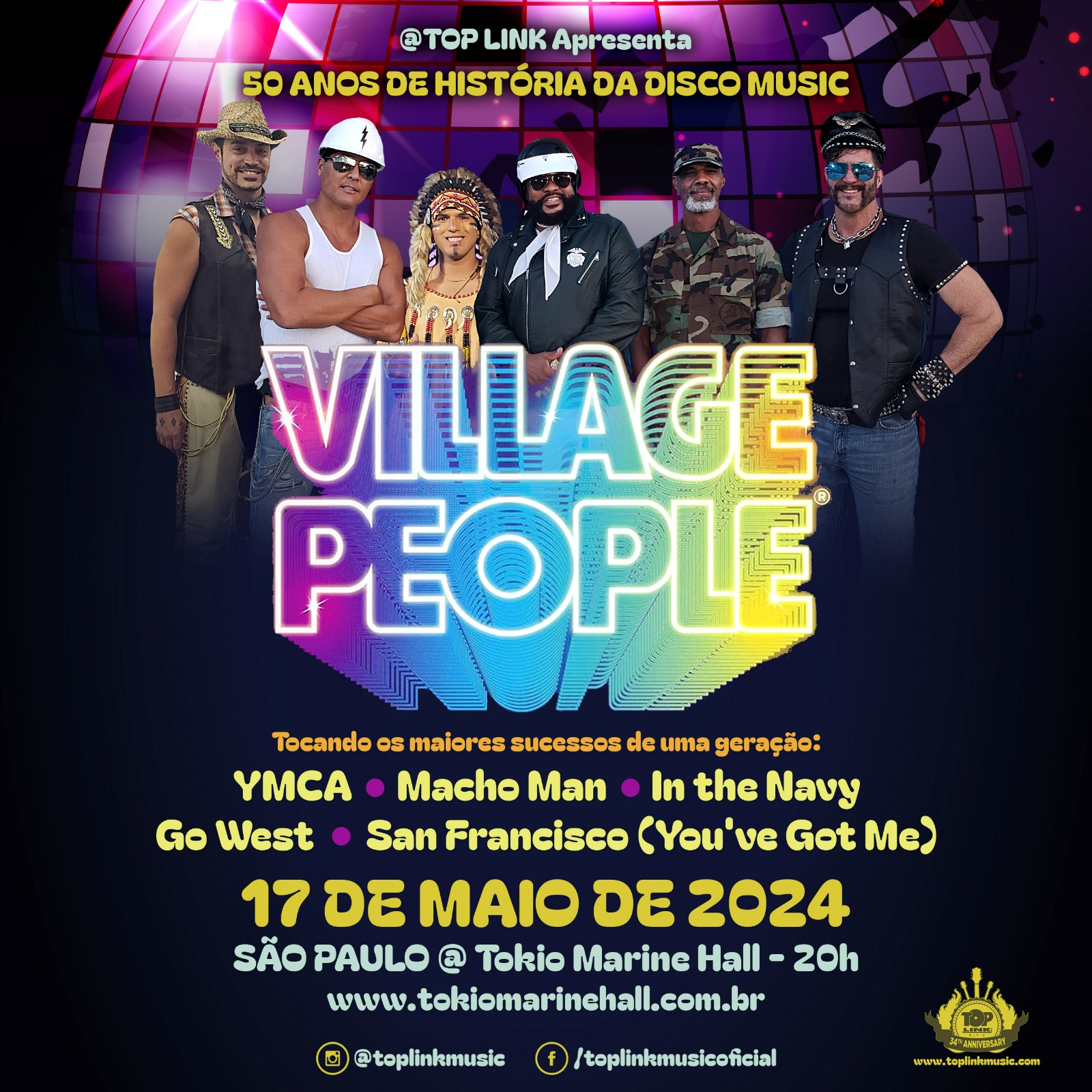 O Village People é, inquestionavelmente, o maior nome da Disco Music do mundo. Desde o álbum de estreia, em 1977, o grupo vem gravando clássicos eternos na história da música. O Brasil tem mais uma oportunidade de celebrar esses grandes hits com o retorno do Village People ao Brasil, após quase uma década.