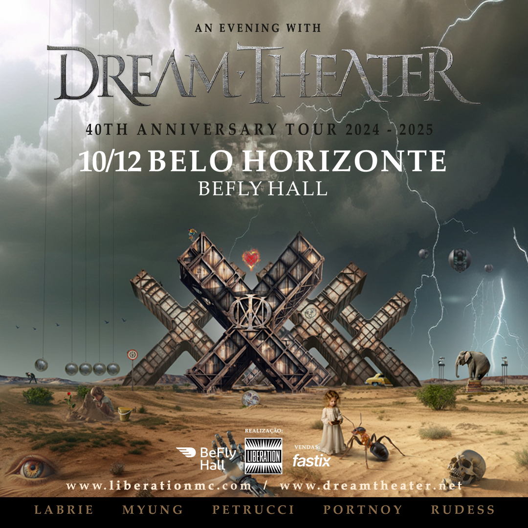 A turnê que celebrará os 40 anos de história do Dream Theater também passará por Belo Horizonte (MG) em dezembro. O show, o quinto da nova passagem da banda pelo Brasil e com a formação clássica junta após 14 anos, será dia 10/12, no BeFly Hall (ex-Arena Hall, Rua Paraíba, 1102 – Loja 1 – Savassi, BH), a partir das 20h30.